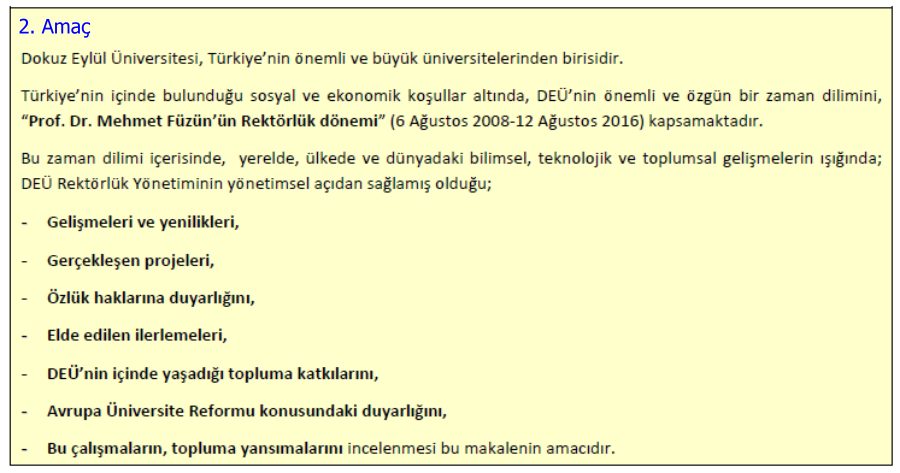 Bu makalede, Dokuz Eylül Üniversitesi tarihinde, “özgün bir dönemi” simgeleyen, 2008-2016 dönemi, yani Prof. Dr. Mehmet Füzün (Fotoğraf 1)’ün Rektörlük dönemi incelenecektir.
