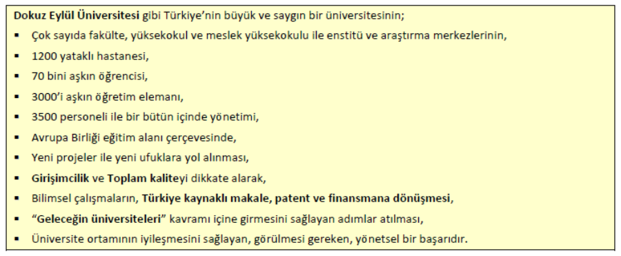 Bu bağlamda olmak üzere, Türkiye’nin büyük, ulusal ve uluslararası alanda değer üreten, önemli üniversitelerinden birsi de “1979-2011 döneminde” ve kuruluşunda görev yapmış olduğum Dokuz Eylül Üniversitesidir.