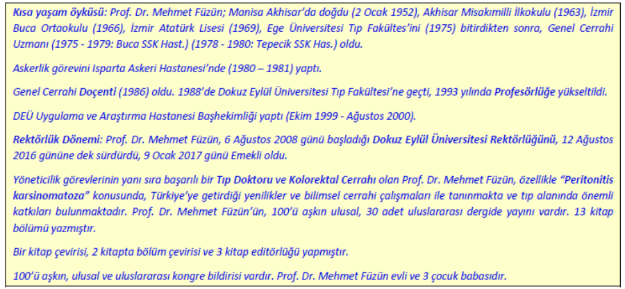 Dokuz Eylül Üniversitesi (DEÜ) Rektörü Prof. Dr. Mehmet Füzün, kedi döneminde üniversitenin değişim sürecini anlattı… CİHAN 03.02.2012(https://www.mynet.com/rektor-fuzun-dokuz-eylul-universitesinin-degisim-surecini-anlatti-180100102928)